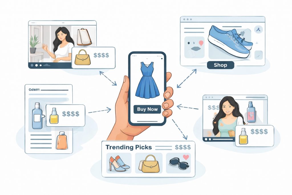 When teams say they’re “doing shoppable,” they often mean wildly different things: a TikTok Shop pilot, an Instagram social commerce gallery, a YouTube Shopping integration, or a creator landing page that behaves like a mini-storefront. In practice, Shoppable commerce is best understood as commerce embedded inside content—video, social, editorial, livestreams, influencer generated content, or curated collections—so the user moves from discovery → desire → purchase with minimal context switching. The reason it works is psychological as much as technical: the content provides social proof and intent, while the shopping layer removes friction at the exact moment confidence peaks.