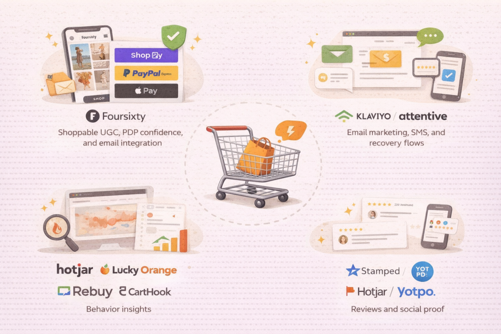 - Foursixty for shoppable UGC, PDP confidence, and email integration