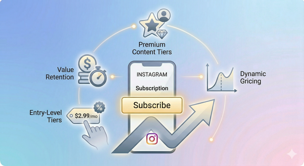 Instagram subscriptions are retention monetization: recurring monthly income in exchange for exclusive access inside the Instagram app. That differs from reach-based monetization (which depends on algorithmic distribution) and from external memberships like Patreon (which offer more control but less native distribution). Instagram also frames subscriptions as a built-in tool with subscriber badges and in-app billing, which changes friction and behavior.