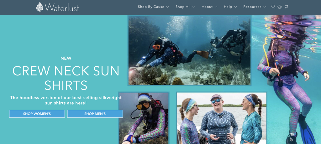 - Organic: Encourage social media users to tag you with branded hashtags. Brands like Waterlust leverage their eco-community by asking for tagged social media posts, which they then curate into a half-page gallery that links directly to products. You can also leverage contests and giveaways to help drum up those followers for you brand!