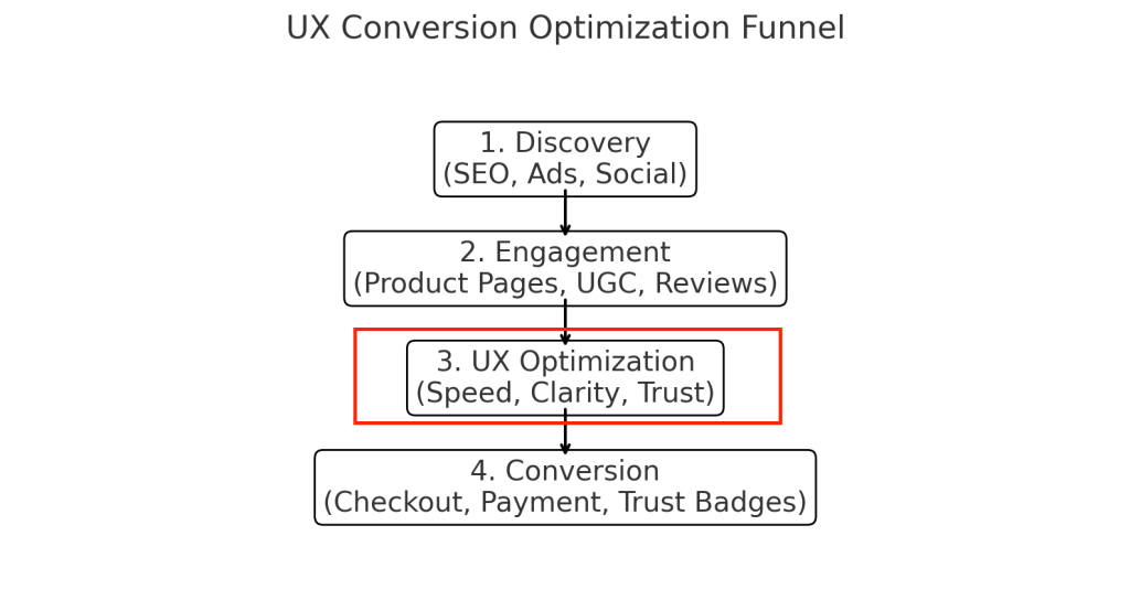 Every aspect of customer experience — from load speed to clarity of messaging — shapes perception and trust. Good UX builds momentum; bad UX breaks it. Optimized flows encourage completion, lifting overall conversion metrics and revenue.